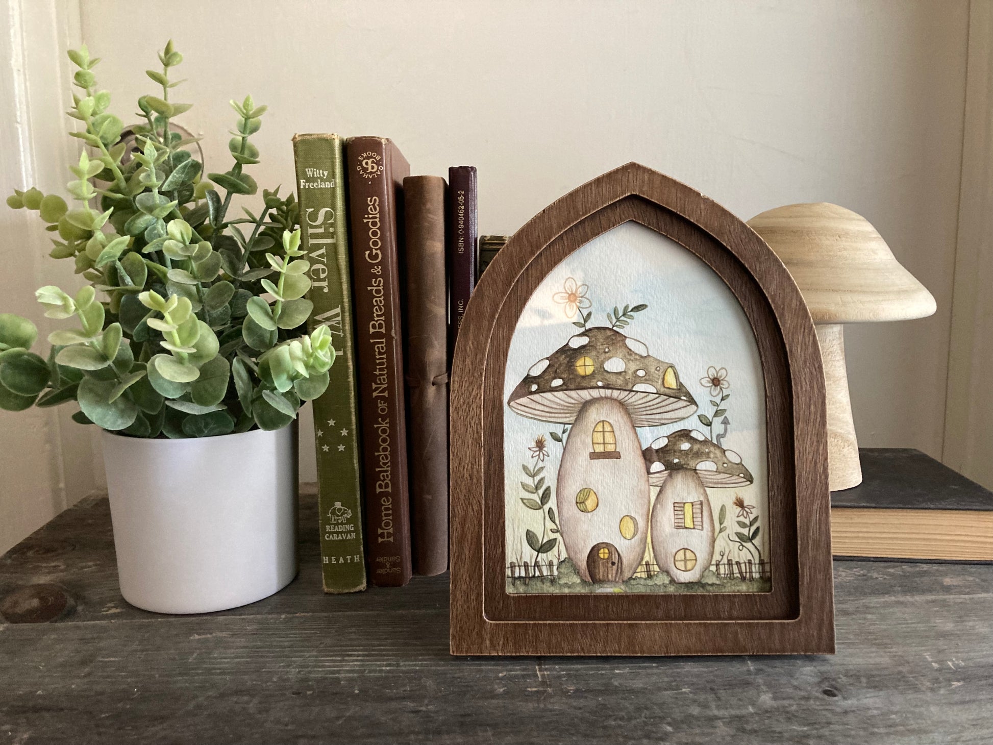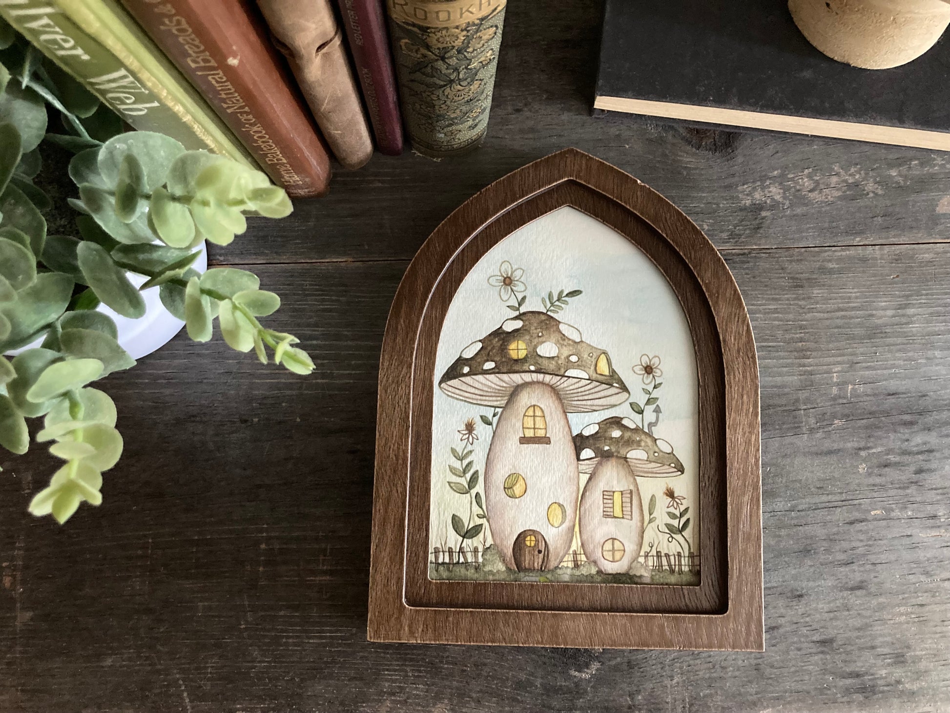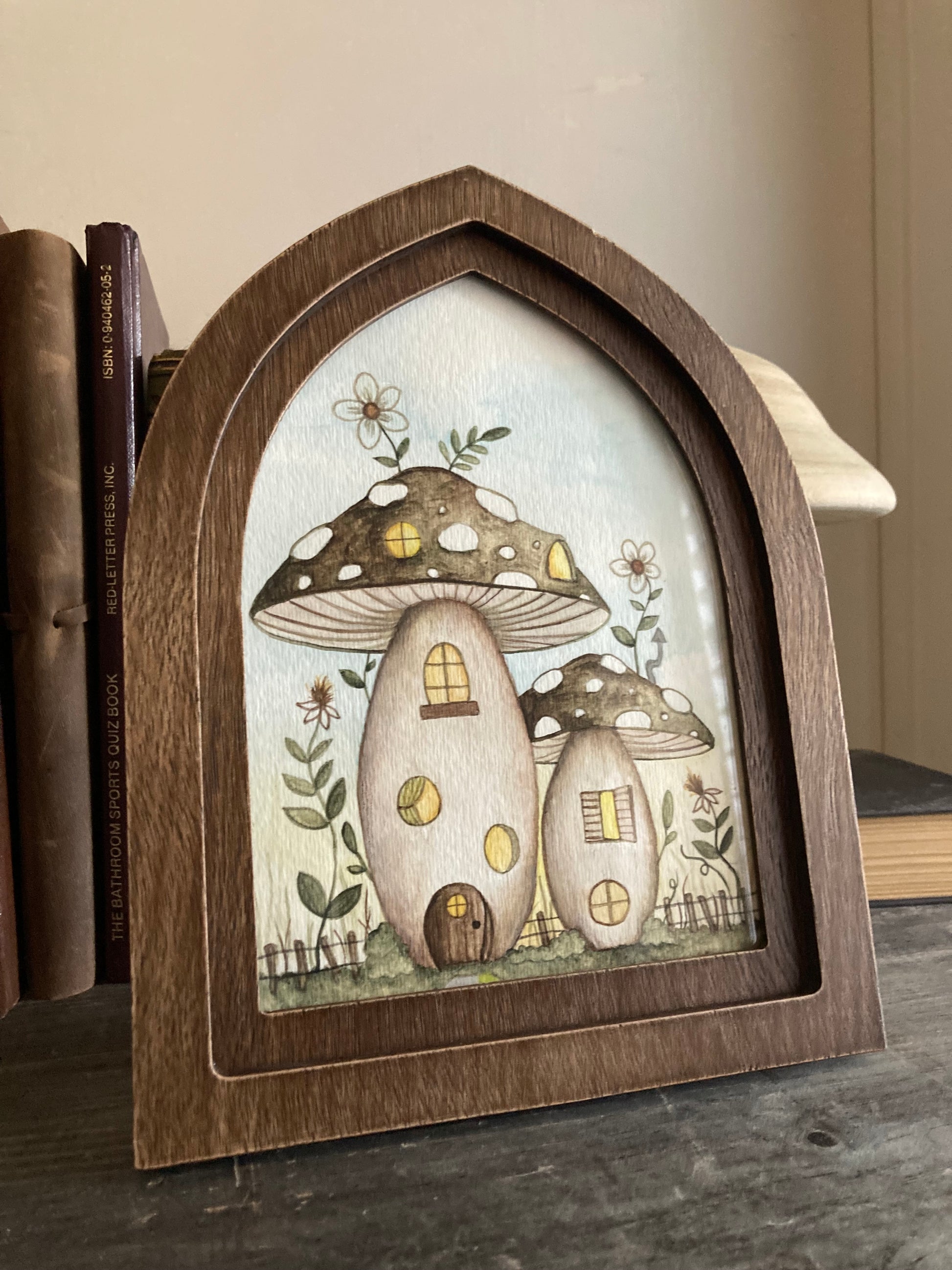 This is an original painting (gouache and watercolor) on thick watercolor paper, and it comes in the frame. An adorable faery dwelling / mushroom house surrounded by flowers and greenery, and a picket fence. Would make a lovely gift for any faery lover, or kept for yourself! :) The back is signed and dated by the artist.
